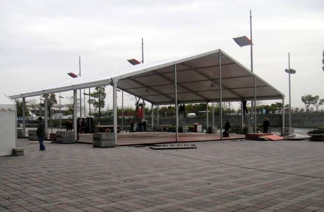 展會篷房采用高強度輕質鋁鋁金材料作為結構支架,篷布采用進口雙面PVC涂層的合成纖維篷布,具有抗風、防水、防火、防紫外線的良好性能,以及穩固安全、美觀大方、裝拆快捷、儲運方便等優點,安全可靠性完全達到國外同類產品的標準,且抗風能力強。