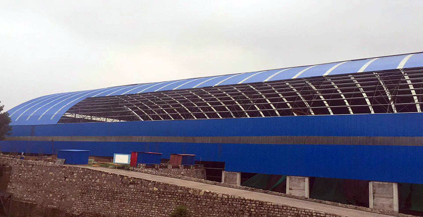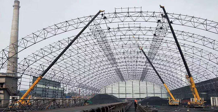 網架是由大量的鋼件按照不同的網絡形狀連接而成的網絡空間結構。一般網架的構成包括三錐體、三棱體、正方體等再由這些基本的單元組成建筑的四邊形、六邊形或者其他任何形體。由網架搭建成的建筑具有空間受力小、剛度大、重量輕、抗震性能好等一系列的優點。