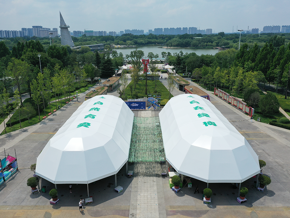 2025年夏季,高山篷房作為鄭州綠博園“歡樂喜聚秀”活動的戰(zhàn)略合作伙伴,以創(chuàng)新設(shè)計(jì)的鉆石型篷房(外白內(nèi)黑)為核心載體,為景區(qū)打造兼具美學(xué)與功能性的藝術(shù)空間,助力為期45天的夏日狂歡活動圓滿落地。