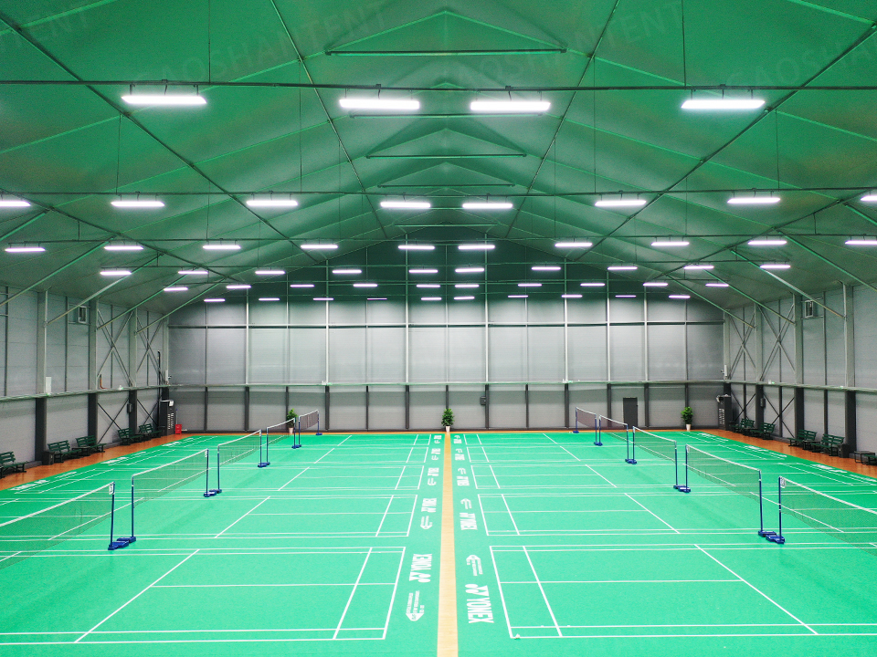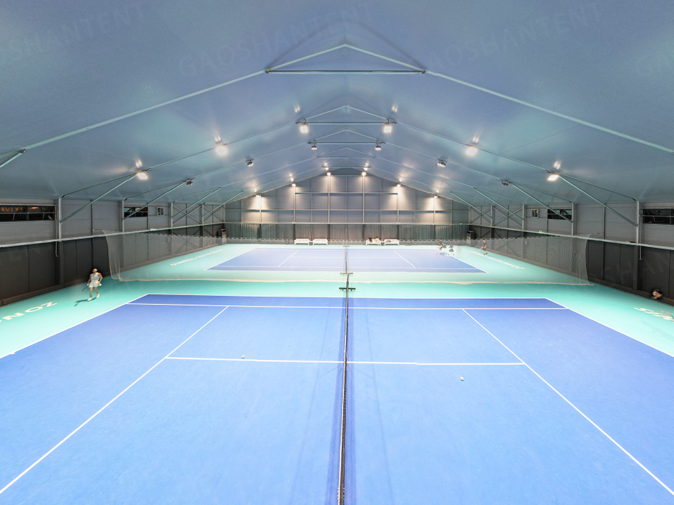 館內(nèi)設(shè)施齊全,配備專業(yè)照明系統(tǒng)和空調(diào)系統(tǒng),頂部篷布加棉設(shè)計(jì)保溫隔熱,顯著降低空調(diào)負(fù)荷。弧形設(shè)計(jì)外觀現(xiàn)代大方,邊高達(dá)7.5米,為球類運(yùn)動提供充足空間