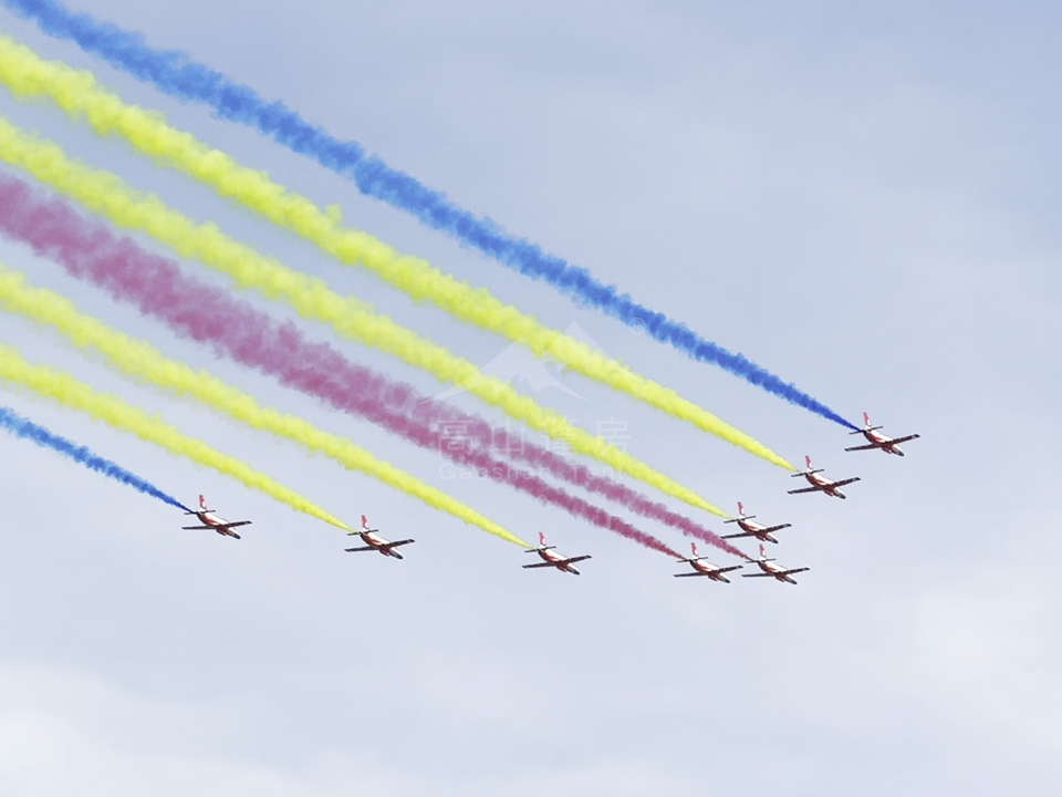飛行表演方面,空軍“八一”、“紅鷹”、“天之翼”表演隊獻上精彩表演。空軍航空大學“紅鷹”、“天之翼”兩支飛行表演隊也參加了表演,今年在保留以往特色動作的同時,調整了部分表演內容,更加突出飛行觀賞性,增強視覺沖擊力。