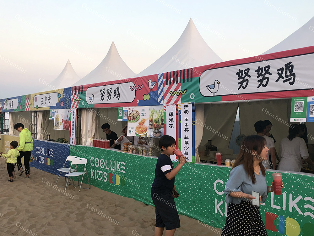 高山尖頂篷房除了單獨(dú)使用外,還可以將它用排水槽連接起來組成更大的面積,形成獨(dú)特的造型,在眾多戶外活動(dòng)中更加出彩。