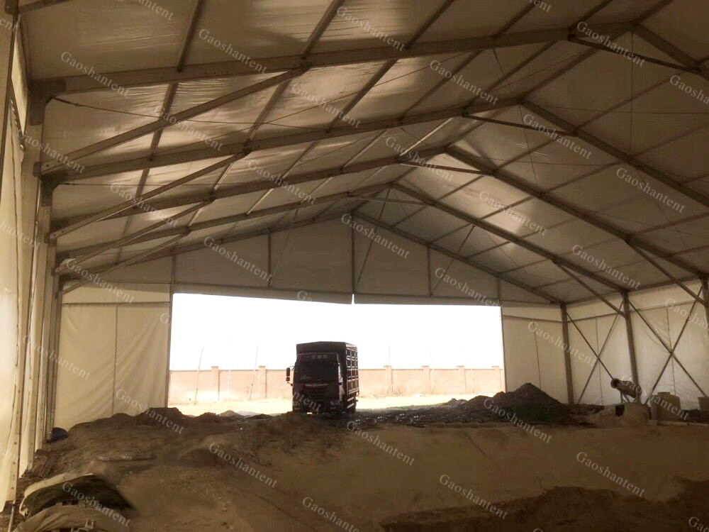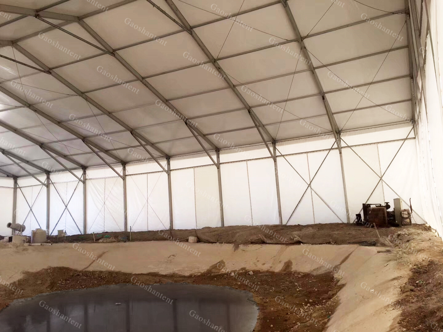 因此,高山篷房在充分了解客戶需求與當地條件的前提下,設立一座3000平方人字形篷房。