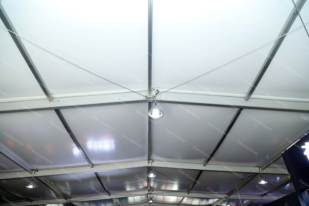 品質(zhì)是高山篷房的代名詞,細(xì)節(jié)是高山篷房的閃光點(diǎn)。公司產(chǎn)品均由技術(shù)人員嚴(yán)格把控,本次活動(dòng)的篷房框架選用高強(qiáng)度鋁型主材,鍍鋅鋼部件作連接,所有材料質(zhì)量如新,篷房?jī)?nèi)部輔以空調(diào)、照明、地臺(tái)等配套設(shè)施,美感十足。