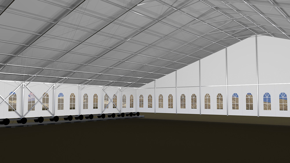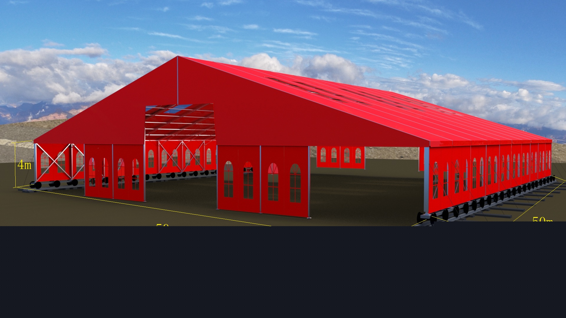 這種篷房建筑,高強度鋁合金結構,抗風能力,載雪能力很強。根據國家要求,必須是可移動結構,工程師們根據參數要求,采用礦輪承載方式,一座篷房建筑鋪設了兩條鐵軌的方式,實現了這個要求,國家環保部門,國土資源部門同時通過驗收。