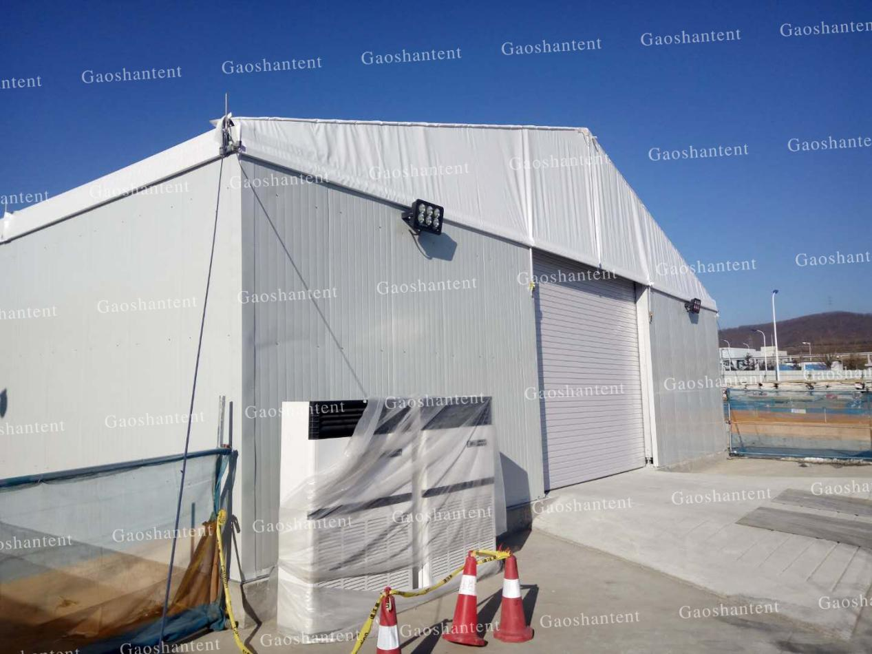 倉儲篷房內部設置多個電氣設備,逃生門,照明燈等,門框四周需結構加固。注重安全性和實用性同時兼顧,能承受各種氣候條件。