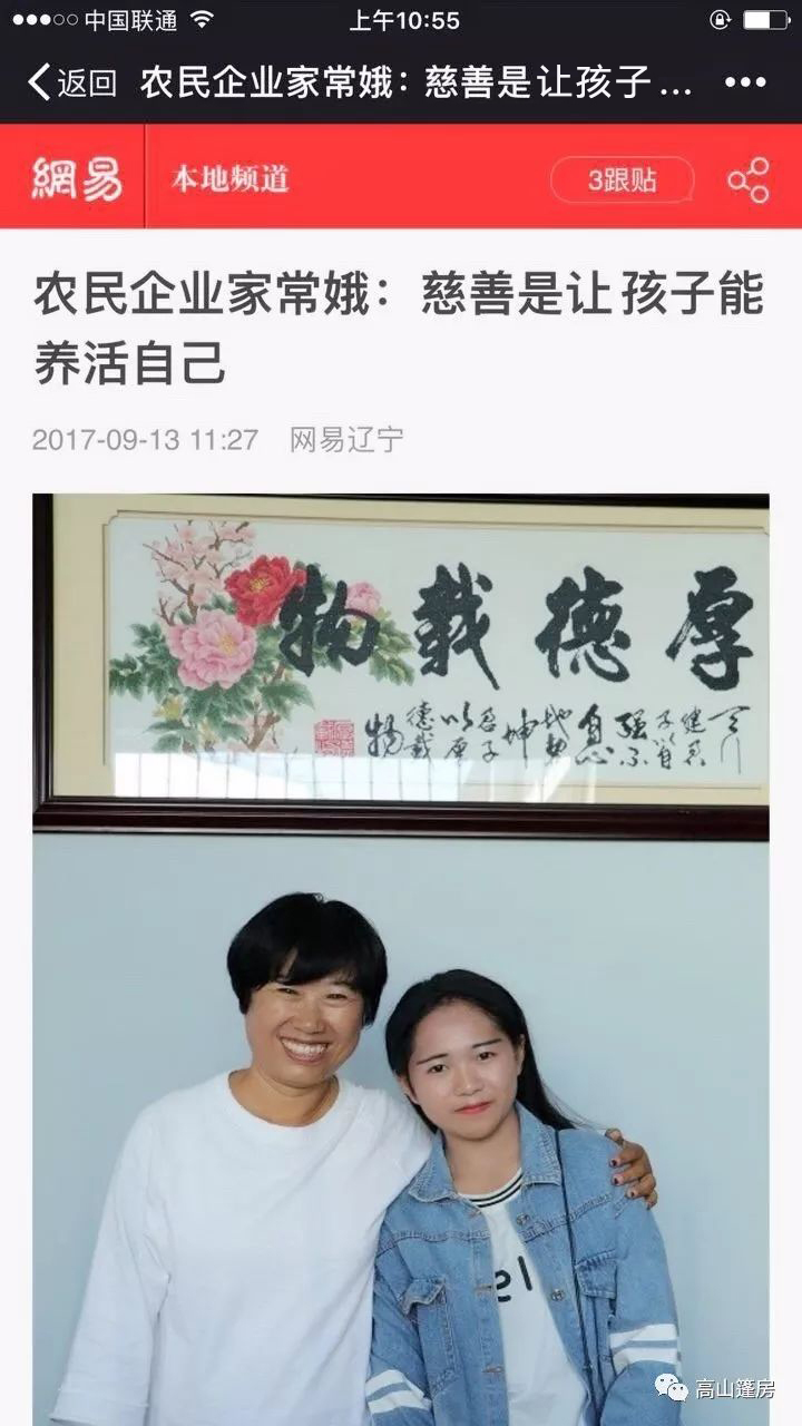 近日,網易新聞報道了高山篷房董事長山常娥資助貧困學子的消息。